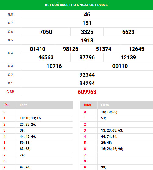 Sau khi phân tích toàn bộ chuỗi số trên, các con số cuối cùng được thống kê và dự đoán cho XSGL ngày 05/12/2025 là: